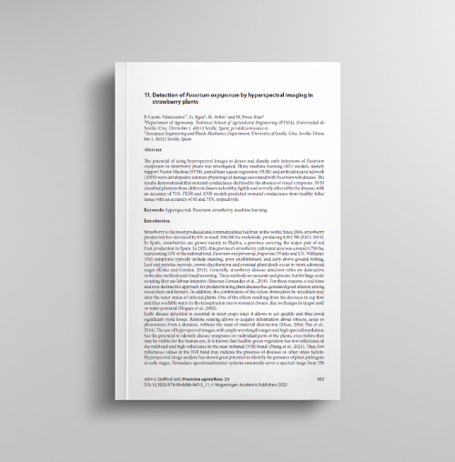 Castro-Valdecantos, P., Egea, G., Avilés, M., & Pérez-Ruiz, M. (2023). Detection of Fusarium oxysporum by hyperspectral imaging in strawberry plants. In Precision agriculture ’23. Leiden, The Netherlands: Wageningen Academic