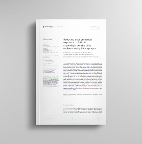 Sánchez-Fernández, L., Barrera-Báez, M., Martínez-Guanter, J., & Pérez-Ruiz, M. (2024). Reducing environmental exposure to PPPs in super-high density olive orchards using UAV sprayers. Frontiers Plant Science, 14, 1272372.